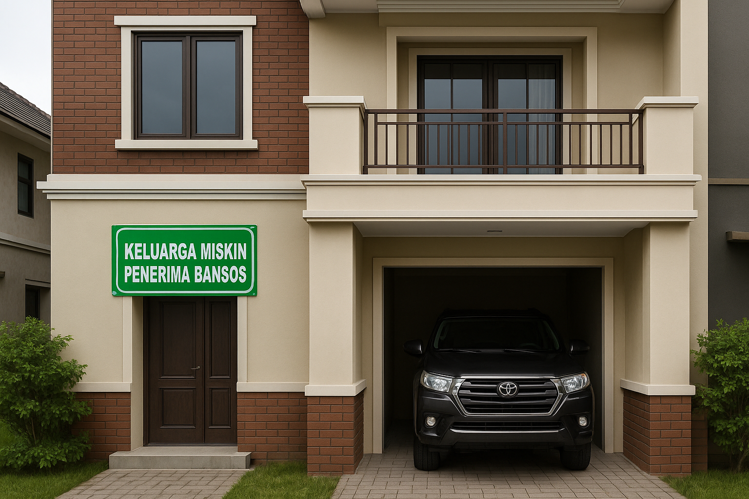 Dalam video yang beredar, tampak seorang petugas perempuan memasang stiker “keluarga miskin penerima bansos” di kaca rumah warga. Di samping petugas itu terlihat sebuah mobil terparkir rapi di garasi. Bangunan rumah yang dipasangi stiker juga tampak kokoh dan cukup mewah dibandingkan bayangan umum penerima bantuan.
